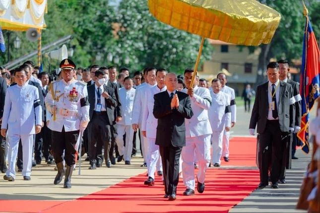 GNO - Lễ trà-tỳ kim quan Đức Đại Tăng vương Tep Vong trọng thể cử hành tại Phnôm Pênh. Đây là nghi thức thiêng liêng đặc biệt theo nghi thức Hoàng gia, với sự tham dự của Quốc vương, Thủ tướng và lãnh đạo cấp cao của Vương quốc Campuchia.