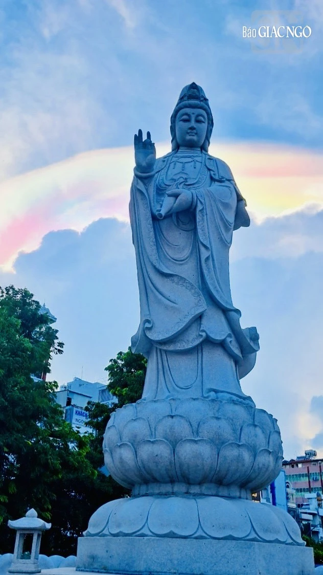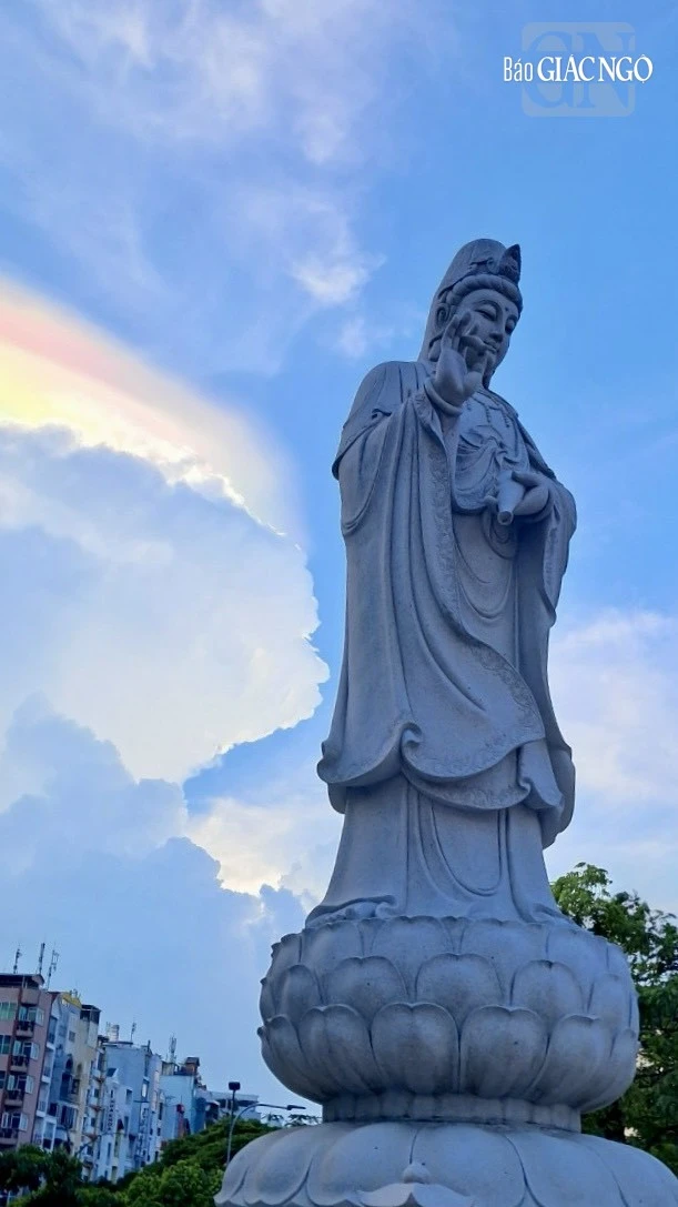 [Ảnh] Mây ngũ sắc lấp lánh sau tôn tượng Bồ-tát Quán Thế Âm tại Việt Nam Quốc Tự