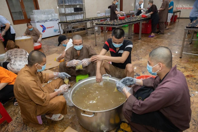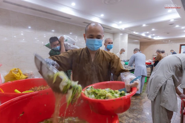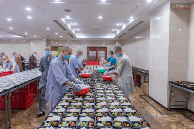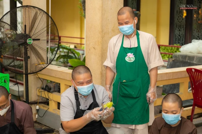 “Theo chỉ dạy của Trưởng lão Hòa thượng Đệ nhất Phó Pháp chủ kiêm Giám luật Hội đồng Chứng minh, Trưởng ban Trị sự GHPGVN TP cũng như xuất phát từ tình hình thực tế, ngay từ những ngày đầu khi đại dịch tái bùng phát tại thành phố, Ban Từ thiện - Xã hội Phật giáo TP.HCM đã nhanh chóng thiết lập bếp ăn dã chiến nhằm hỗ trợ một cách thiết thực nhất cho công tác phòng chống dịch của thành phố.”, Thượng tọa Thích Thanh Phong, Phó ban Trị sự kiêm Trưởng ban Từ thiện - Xã hội Phật giáo TP.HCM, trụ trì chùa Vĩnh Nghiêm cho biết.