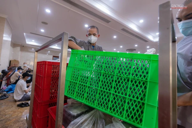 Riêng đội xe với khoảng 15 người giao nhận suất ăn được chia theo hai khung giờ cố định trong ngày. Buổi sáng, các suất ăn sẽ được chuyển lên xe từ 9g30 đến 11g. Các xe giao cơm đến các điểm tiếp nhận, bệnh viện điều trị Covid-19 ở xa sẽ được ưu tiên nhận trước. Buổi chiều, việc giao cơm bắt đầu từ 15g30 đến 15g45 và hoàn tất vào 17g. Riêng với các bệnh viện dã chiến, khu điều trị Covid-19, việc giao nhận phải đảm bảo các suất ăn đến đúng giờ nghỉ của y bác sĩ cũng như giờ ăn của bệnh nhân.