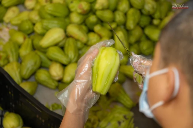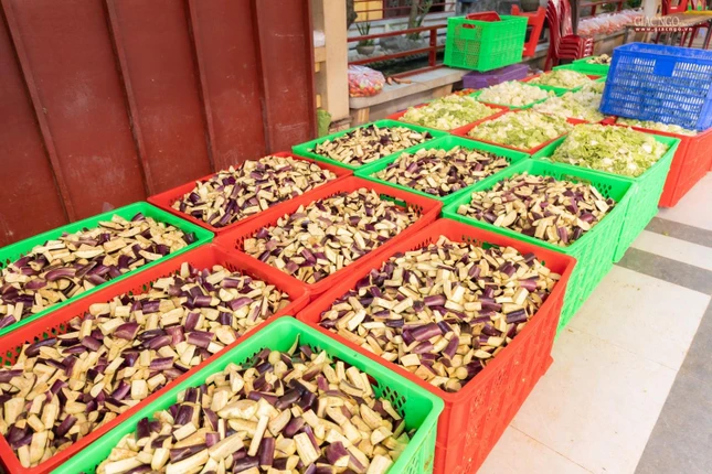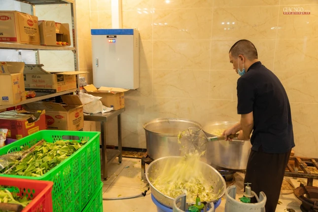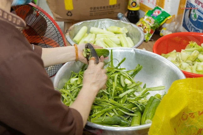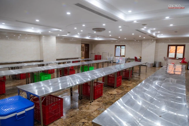 Dựa trên số lượng nguyên liệu, rau củ tiếp nhận hàng ngày, người phụ trách chính của các khâu sẽ tính toán phân phối thực đơn phù hợp. Bếp ăn sử dụng khoảng 1,2 tấn gạo mỗi ngày.
