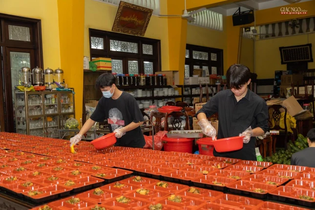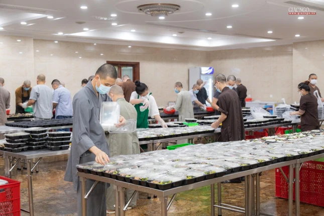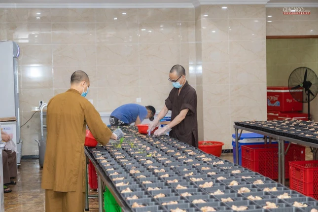GNO - Được tổ chức bởi Ban Từ thiện - Xã hội Phật giáo TP.HCM, trong suốt gần 2 tháng qua, bếp ăn thiện nguyện chùa Vĩnh Nghiêm đảm bảo cung ứng suất ăn mỗi ngày hỗ trợ tuyến đầu chống dịch.