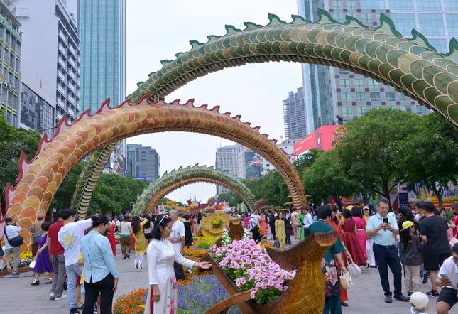 Được biết, đường hoa Nguyễn Huệ Tết Giáp Thìn mở cửa đón khách đến 21 giờ ngày 14-2 (mùng 5 Tết).