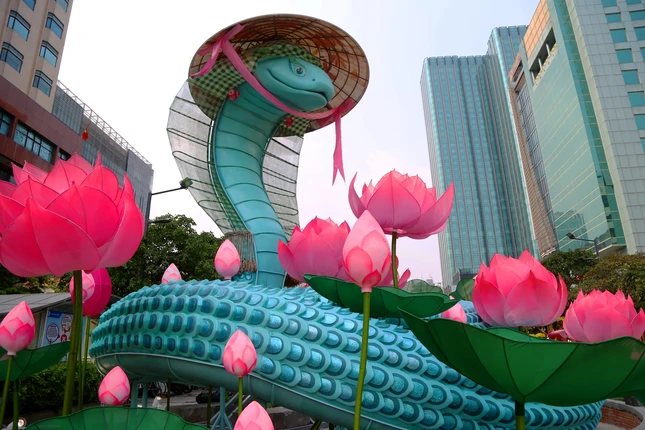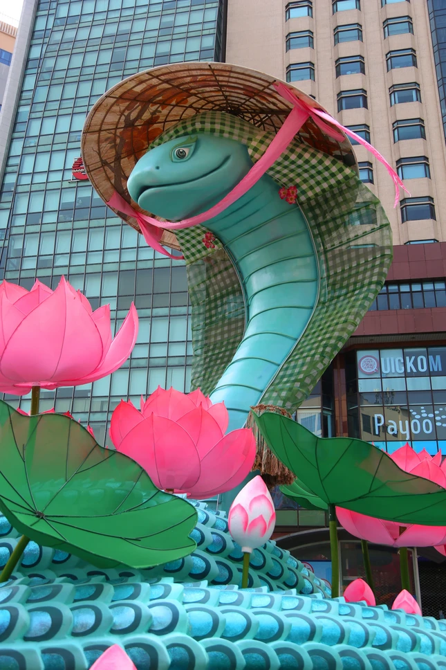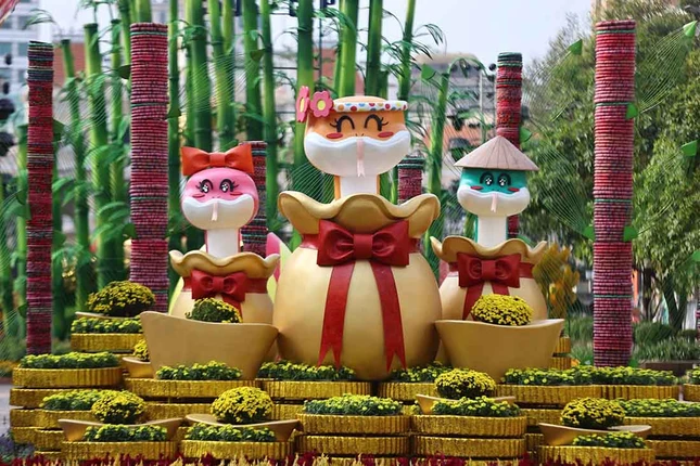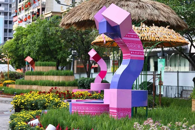 Toàn bộ đường hoa có khoảng 90 tạo hình linh vật con rắn được thể hiện với đa dạng sắc thái và hình dáng, phần lớn tập trung sau cổng chào. Mỗi linh vật có tạo hình riêng biệt, mang nét dễ thương, duyên dáng.