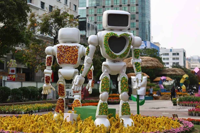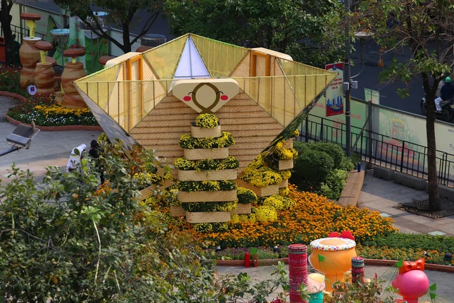 Bên cạnh đó, không gian đường hoa Nguyễn Huệ Tết năm nay tiếp tục được tô điểm bởi những tác phẩm trưng bày, cắm hoa nghệ thuật đặc sắc đến từ Tổng lãnh sự quán các nước tại TP.HCM. Theo đó, 10 gian hàng trang trí hoa nghệ thuật, giới thiệu văn hóa mỗi quốc gia gồm: Mỹ, Hà Lan, Lào, Ý, Indonesia, Hàn Quốc, Nga, Trung Quốc, Thái Lan và Vương quốc Anh đã góp thêm màu sắc phong phú, thú vị cho diện mạo của đường hoa lần thứ 22 Tết Ất Tỵ 2025.