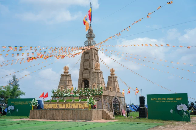 GNO - Được làm hoàn toàn từ tre, lễ đài Phật đản của Phật giáo H.Triệu Phong không chỉ mang đến một không gian quen thuộc, đầy sắc màu chốn làng quê mà còn truyền tải thông điệp về bảo vệ môi trường đến người dân, tín đồ Phật tử trong mùa Phật đản năm nay.