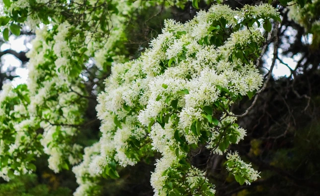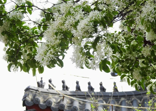 GNO - Chùa Longdong trong khu thắng cảnh Kongwangshan (TP.Liên Vân Cảng, tỉnh Giang Tô, Trung Quốc) thu hút du khách tham quan nhờ cây hoa lưu tô hơn 830 tuổi, thường trổ bông trắng muốt đầy cành vào mỗi dịp xuân về.