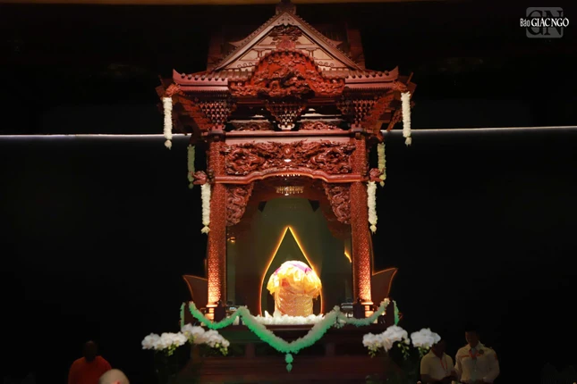Trong khuôn khổ Đại lễ Vesak Liên Hiệp Quốc năm 2025 do GHPGVN đăng cai tổ chức lần đầu tiên tại TP.HCM, Ban Tổ chức đã cung rước xá-lợi Đức Phật - Quốc bảo Ấn Độ về tôn trí tại chùa Thanh Tâm (Phật Cô Đơn) trong thời gian diễn ra Đại lễ để Tăng Ni, Phật tử chiêm bái.