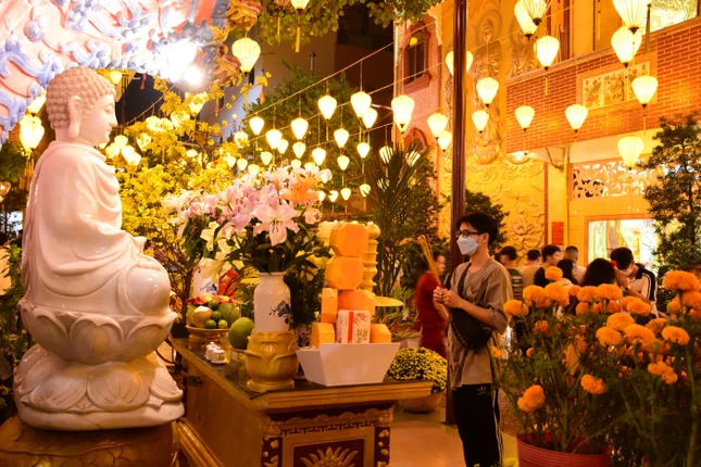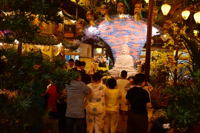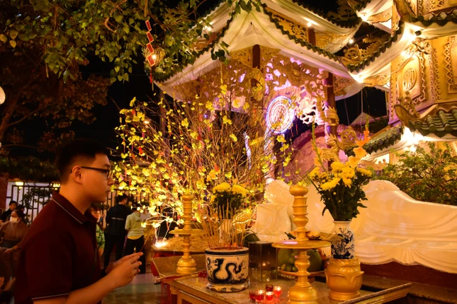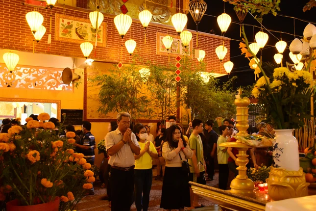 GNO - Sau thời khắc chuyển giao giữa năm cũ và năm mới, người dân, Phật tử đã đến tịnh xá Lộc Uyển (121 Kinh Dương Vương, P.12, Q.6) để dâng hương lễ Phật, cầu nguyện một năm mới bình an.