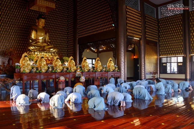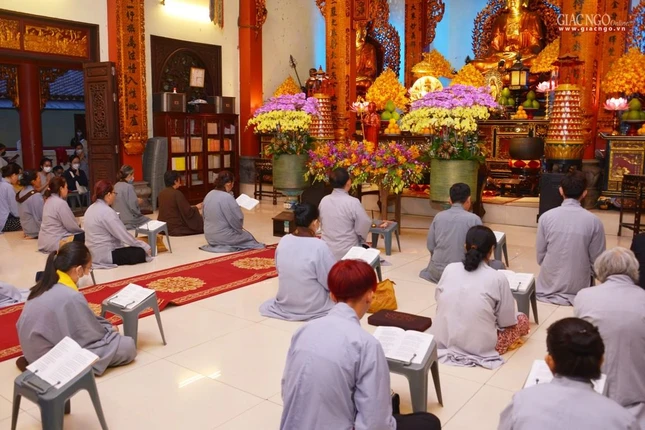 Phật tử thành kính tham dự thời tụng kính sớm tại chùa Huê Nghiêm - TP.Thủ Đức |