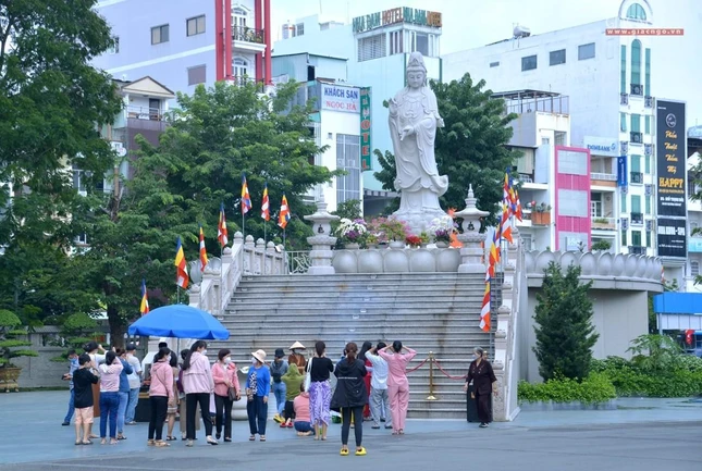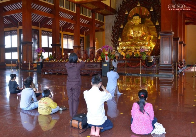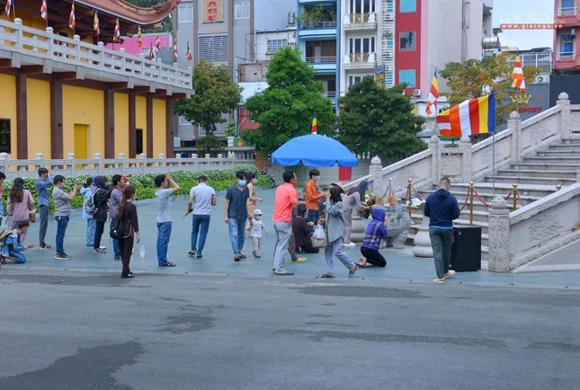 Sau đây là những hình ảnh phóng viên ghi nhận được tại một số chùa như Vĩnh Nghiêm, Pháp Hoa, Minh Đạo, Xá Lợi (Q.3), chùa Huê Nghiêm, pháp viện Minh Đăng Quang (TP.Thủ Đức) và Việt Nam Quốc Tự - Q.10.