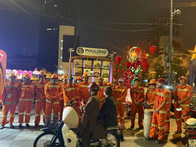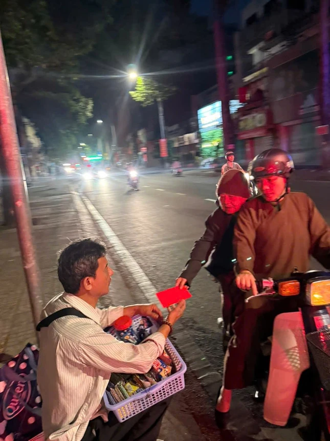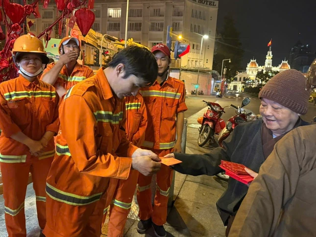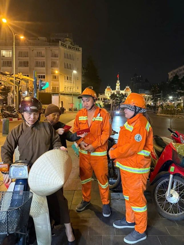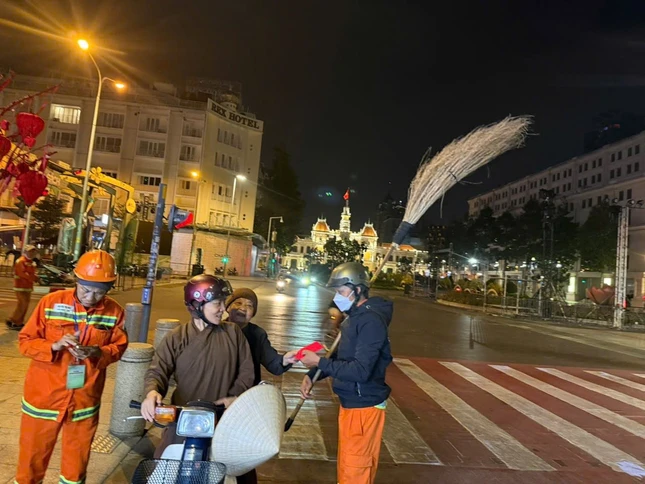 GNO - Năm nào cũng vậy, vào rạng sáng ngày cuối năm, Ni trưởng Thích nữ Tịnh Nguyện, Trưởng ban Thường trực Ban Chứng minh Phân ban Ni giới T.Ư cùng thị giả đi trên chiếc xe máy đến với anh chị em công nhân môi trường đang làm việc trên đường phố để lì-xì cuối năm và chúc họ có Tết hạnh phúc.
