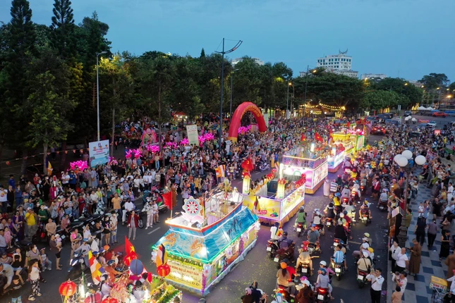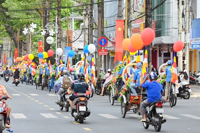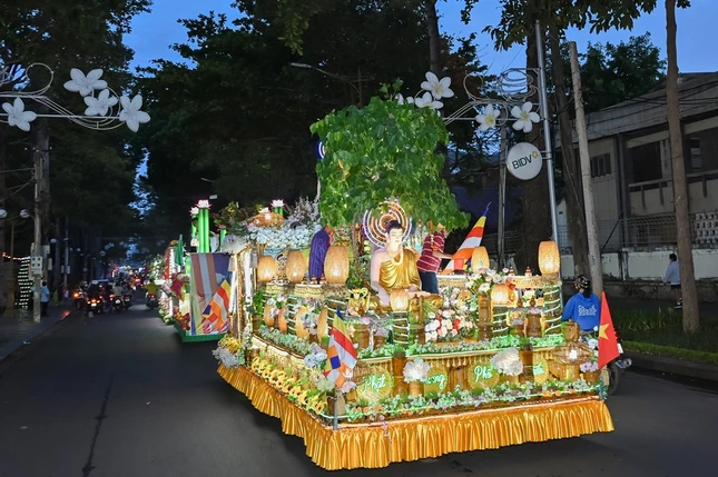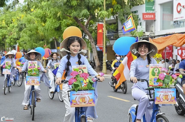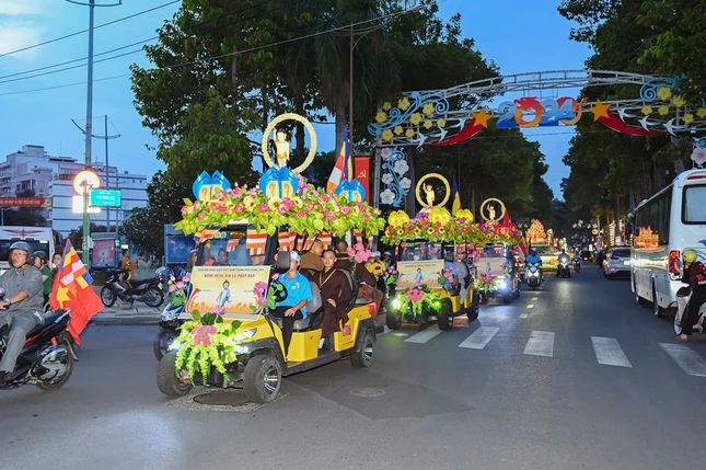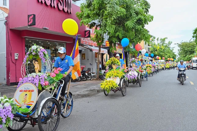 Hình ảnh đoàn diễu hành xe ô tô hoa, xe đạp hoa kính mừng Đại lễ Phật đản: