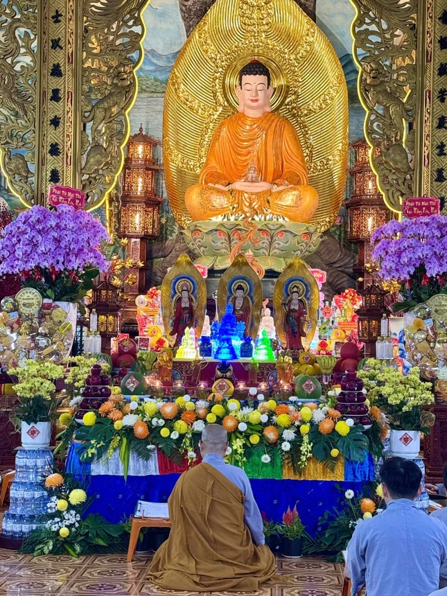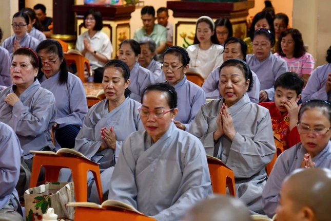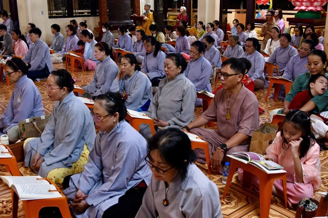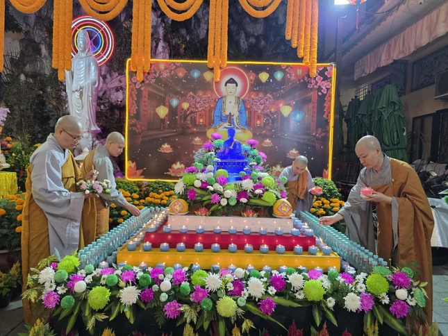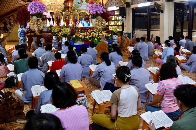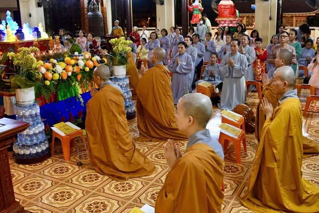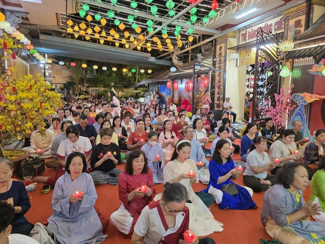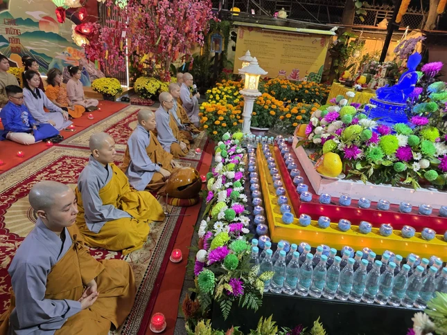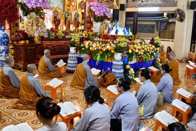 GNO - Tối mùng 1 Tết Bính Ngọ, Quan Âm tu viện (P.Cầu Kiệu, TP.HCM) diễn ra Lễ khai kinh Dược Sư, trì tụng suốt tháng Giêng để cầu nguyện quốc thái dân an, người người được tâm an thân hòa, cát tường như ý.
