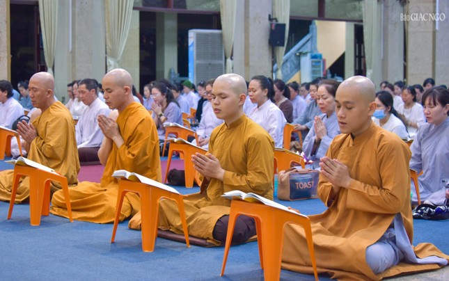 | Chư Tăng hướng dẫn mọi người lễ Phật, thực hiện nghi thức tâm linh của người con Phật |