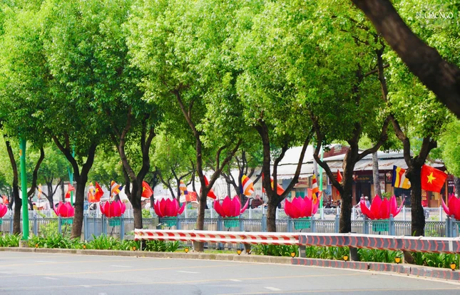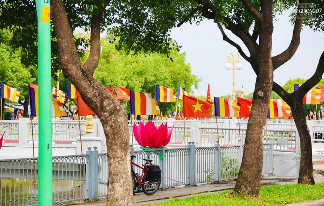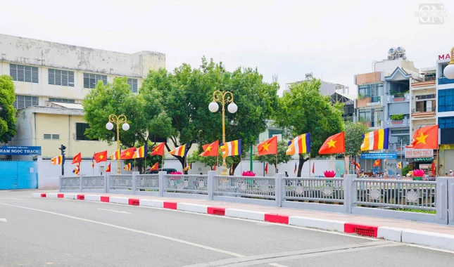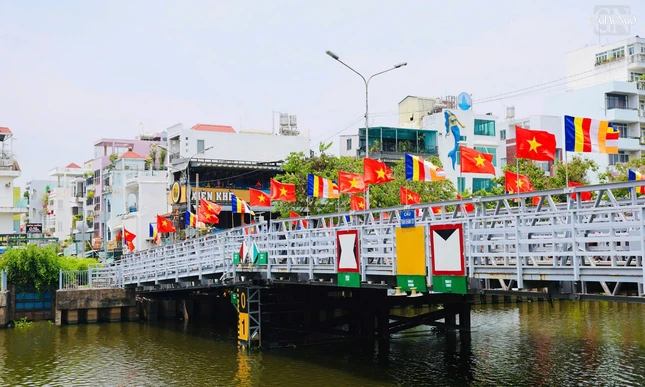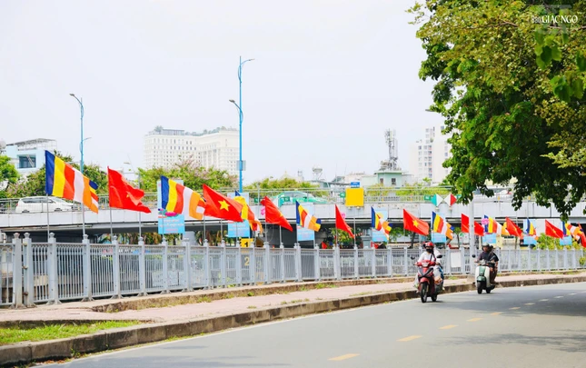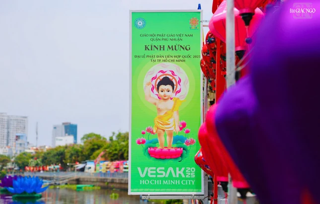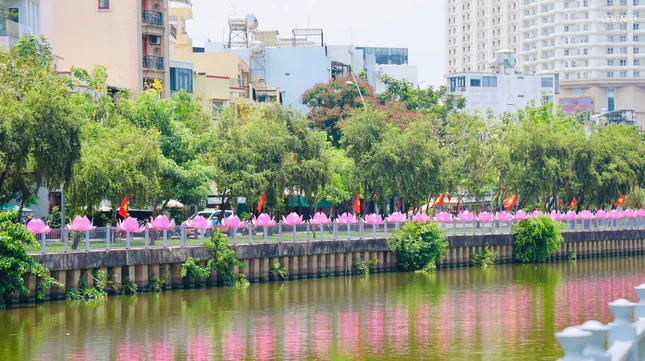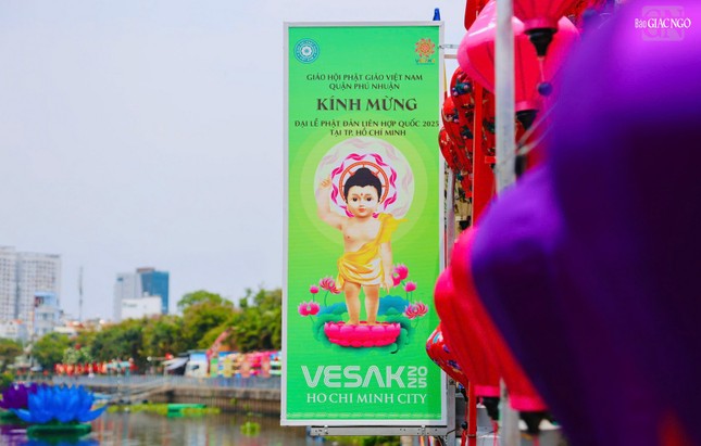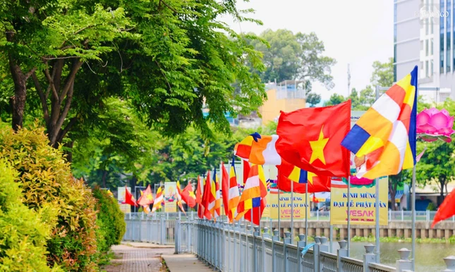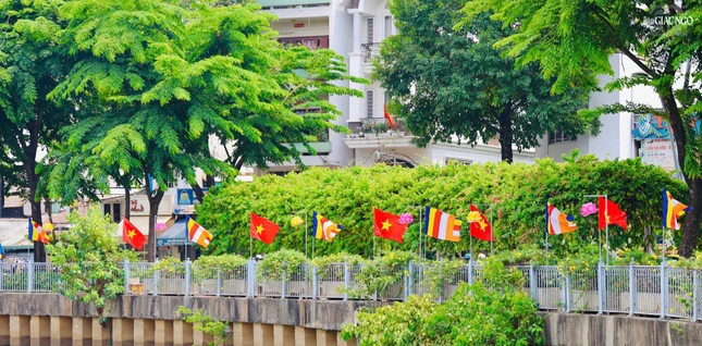GNO - Dọc theo hai bên bờ kênh xanh mát Nhiêu Lộc - Thị Nghè, cờ, hoa, pano được thiết trí góp phần tạo nên không khí rộn ràng kính mừng Phật đản Phật lịch 2569 và Đại lễ Vesak Liên Hiệp Quốc 2025 tổ chức tại TP.HCM.