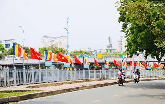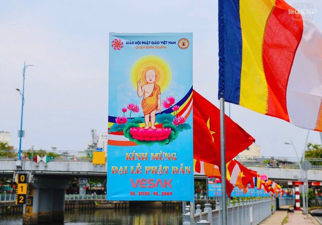 Theo đó, hai bên bờ Kênh Nhiêu Lộc - Thị Nghè, dọc theo tuyến đường Hoàng Sa, Trường Sa, Ban Trị sự GHPGVN Q.Phú Nhuận, Q.Bình Thạnh cùng các chùa Khuông Việt, Viên Giác (Q.Tân Bình); chùa Giác Uyển, Hải Đức, Quan Âm tu viện (Q.Phú Nhuận); chùa Pháp Hoa, Candaransi, Vĩnh Nghiêm (Q.3); tổ đình Vạn Thọ (Q.1)... đã tôn trí tôn tượng Phật đản sanh, trang trí cờ, pano, đèn lồng, hoa sen... hân hoan đón mừng ngày Đức Thế Tôn thị hiện nơi cõi Ta-bà này.