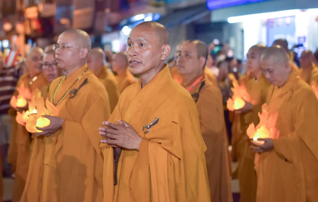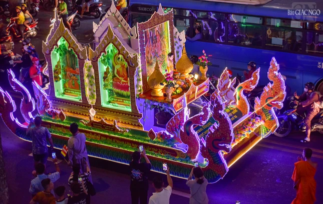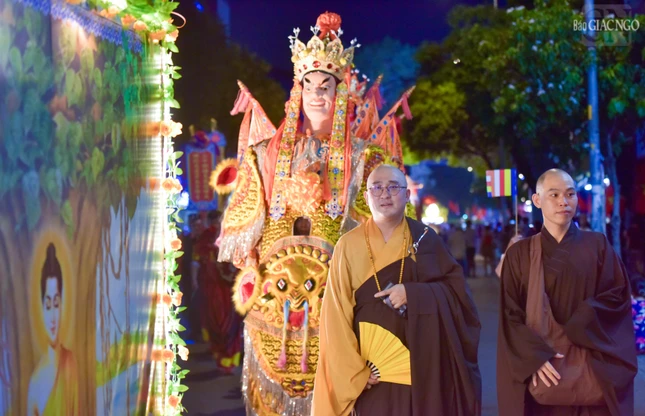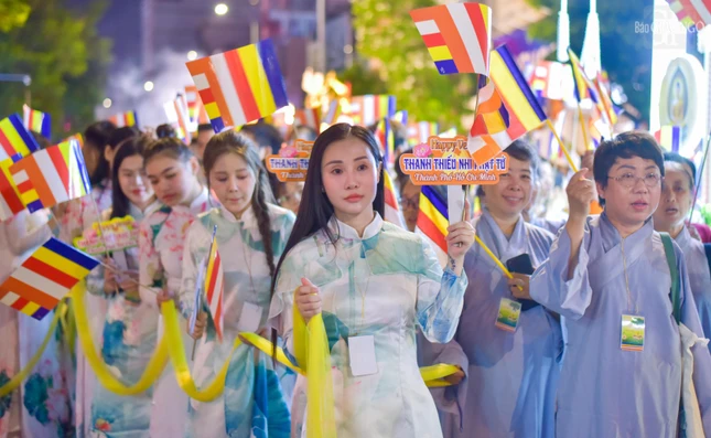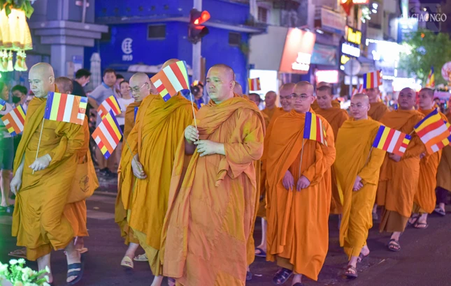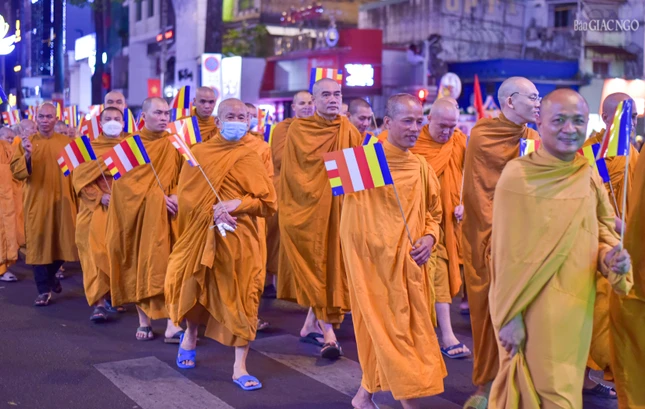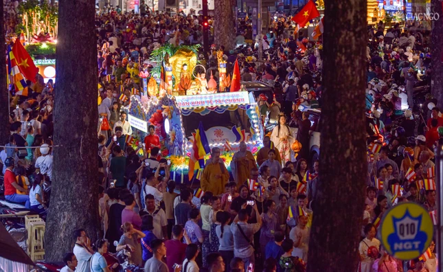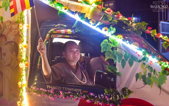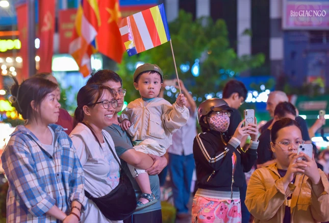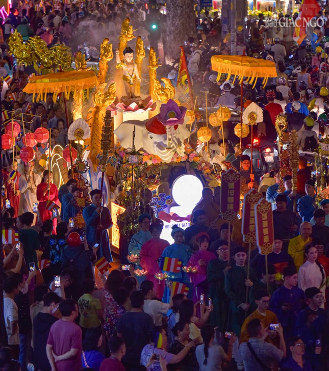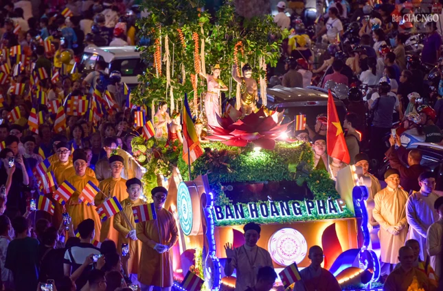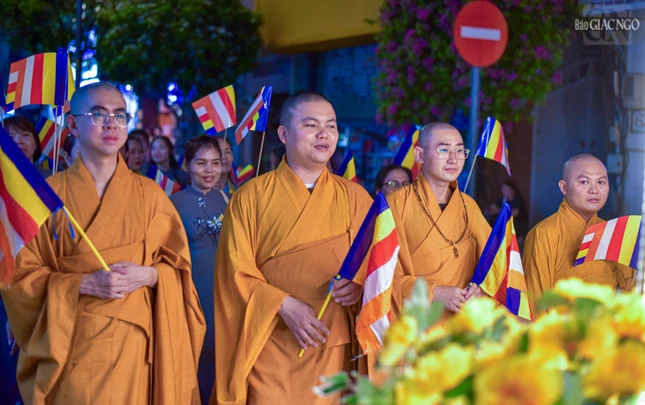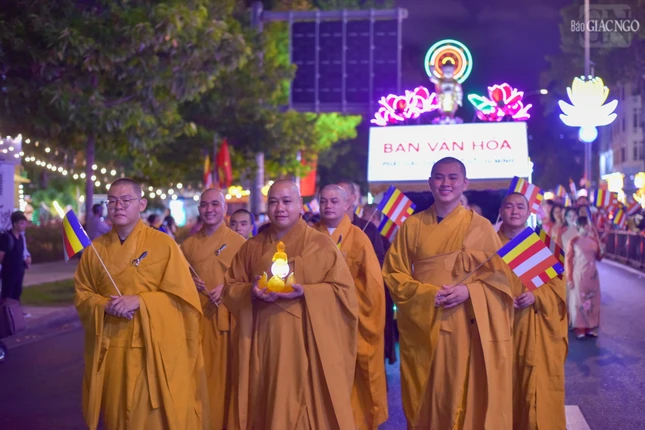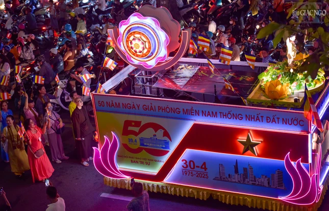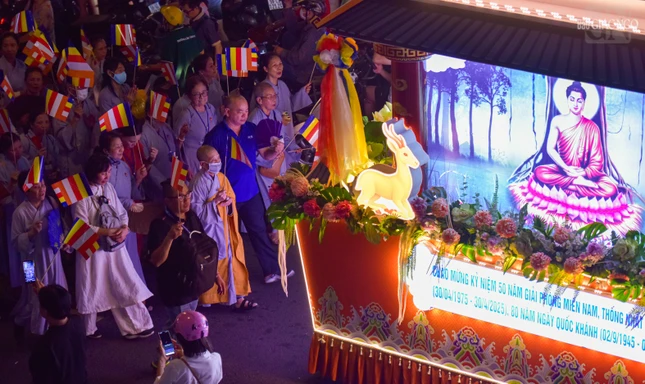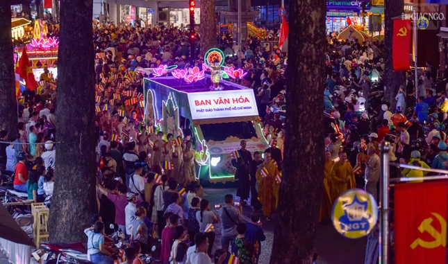 Theo lộ trình cung rước Đức Phật đản sinh từ đường Sư Vạn Hạnh (tổ đình Ấn Quang) - Ngô Gia Tự - đường Điện Biên Phủ - Cao Thắng - đường 3/2 - vào cổng chính Việt Nam Quốc Tự - nơi lễ đài chính của Phật giáo TP.HCM, đoàn xe hoa đã tạo nên dấu ấn riêng với sắc màu thiêng liêng của đêm tháng Tư khánh đản Đức Từ Phụ Thích Ca Mâu Ni. Sắc màu cùng hòa vào không khí thành kính, trang nghiêm, góp phần lan tỏa hình ảnh đẹp, truyền thông điệp từ bi, trí tuệ, bao dung, hòa bình đến cộng đồng của mùa Phật đản an lành trong mỗi trái tim người con Phật.