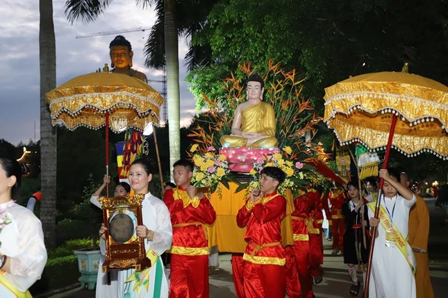 Các đoàn rước kiệu diễu hành thuộc 24 tỉnh thành khu vực phía Bắc với những trang phục đầy màu sắc rực rỡ cờ hoa tươi vui trong sự chào đón của 2.000 trại sinh.