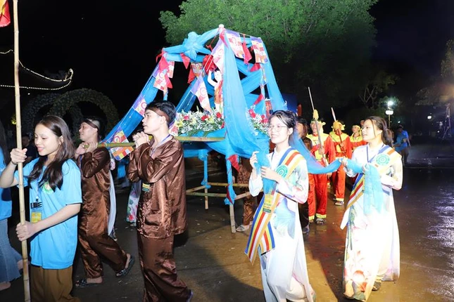 GNO - Trong khuôn khổ chương trình hội trại Tuổi trẻ và Phật giáo với chủ đề "Hào khí Thăng Long" lần II được tổ chức tại chùa Khai Nguyên, chiều 25-6, diễn ra lễ diễu hành của 24 tỉnh thành khu vực phía Bắc tại khuôn viên chùa Khai Nguyên với các tiết mục rước kiệu rất đặc sắc của văn hóa vùng miền.