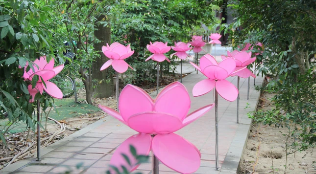 Để có đươc không gian đó, những ngày đầu tháng Tư, Ban Tổ chức Đại lễ Phật đản Phật lịch 2569 tại Huế đã tiến hành công tác trang hoàng để cúng dường ngày Khánh đản của Đức Thế Tôn.