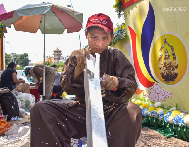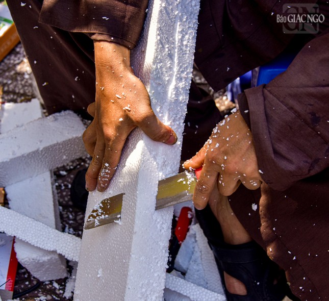 Cùng ngắm những khoảnh khắc chư Tăng, Phật tử làm thuyền hoa do phóng viên Báo Giác Ngộ ghi nhận: