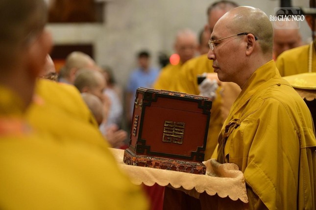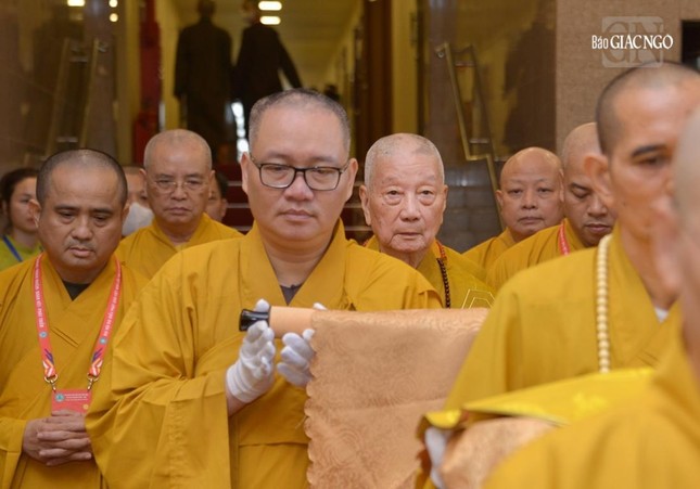 Theo đó, Đức Quyền Pháp chủ GHPGVN - Trưởng lão Hòa thượng Thích Trí Quảng được Đại hội nhất tâm suy tôn Đức Đệ Tứ Pháp chủ GHPGVN.