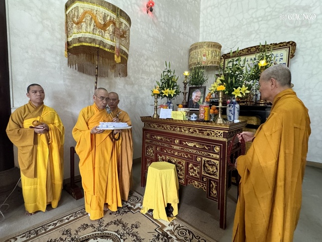 Trong không gian thanh tịnh của chốn già lam lịch sử, lời kinh cầu nguyện theo nghi thức truyền thống. Tiếp đó, trước hương án của cố Giáo sư Cao Huy Thuần được thiết trí tại hậu tổ chùa Từ Đàm, chư Tăng đã cử hành lễ thọ tang cho thân quyến của cố Giáo sư đang hiện diện.
