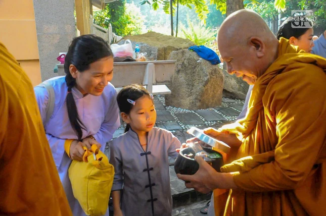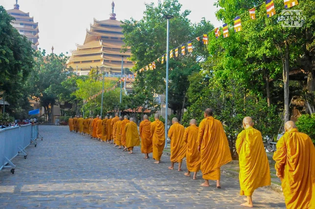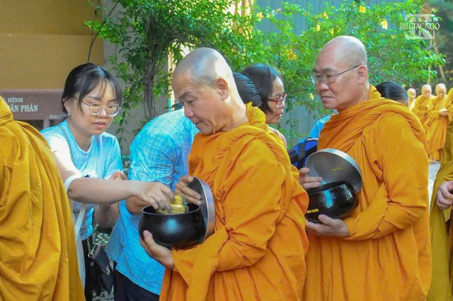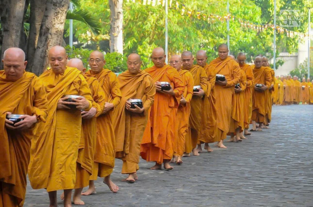 Dưới sự hướng dẫn của chư Trưởng lão, Tăng Ni đã từng bước khoan thai nhẹ nhàng trì bình khất thực, gợi nhắc công hạnh thanh bần giản dị của đời sống tu hành, qua đó phát khởi tâm lành, tạo nguồn an lạc cho tự thân.