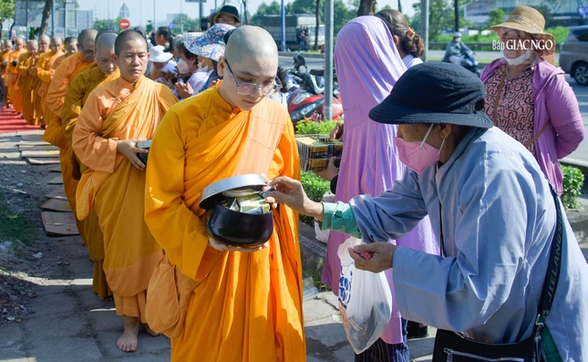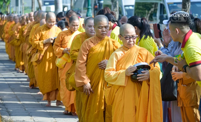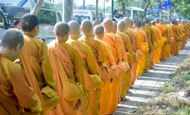 GNO - Đoàn khất thực do Trưởng lão Hòa thượng Giác Tường, Ủy viên Thường trực Hội đồng Chứng minh, Giáo phẩm Chứng minh hệ phái Khất sĩ dẫn đầu; cùng với sự tham dự của hơn 500 Tăng Ni hệ phái, diễn ra trong khuôn viên pháp viện Minh Đăng Quang - TP.Thủ Đức (TP.HCM) sáng 9-11-2023.