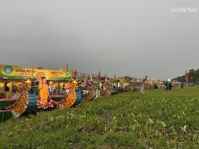 32 chiến thuyền hoa của các đơn vị được trang trí theo nhiều chủ đề về cuộc đời Đức Phật được các đơn vị thuyền hoa thiết trí và tập kết từ nhiều ngày trước tại bờ sông Hương - bên bia Quốc Học để chuẩn bị cho lễ khai mạc.
