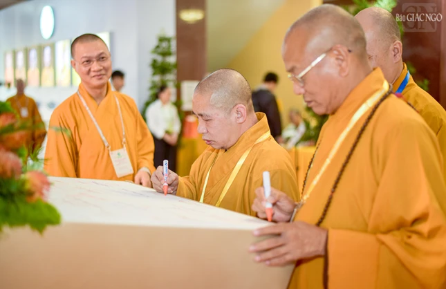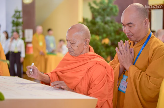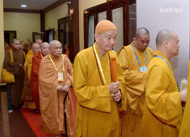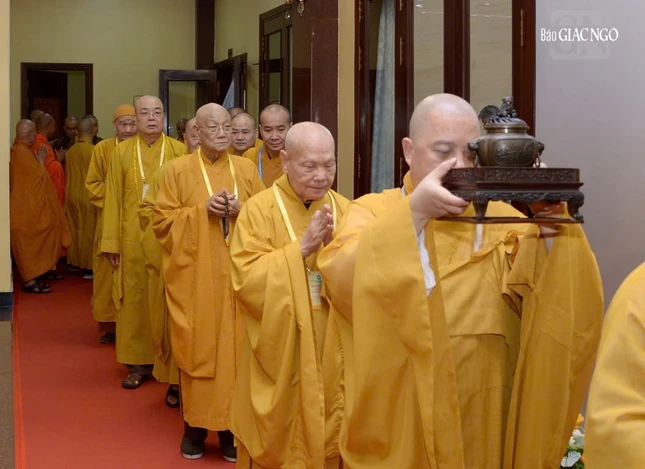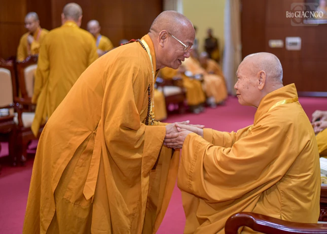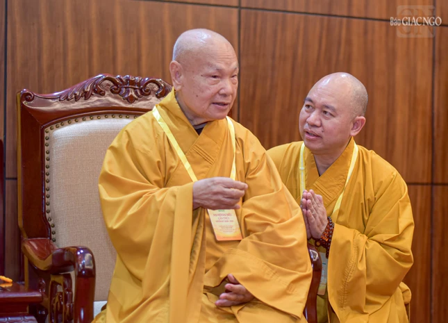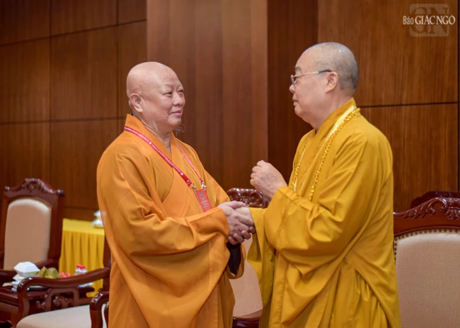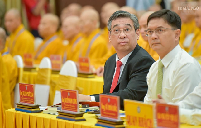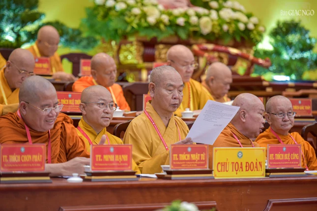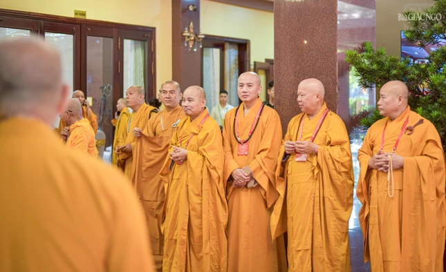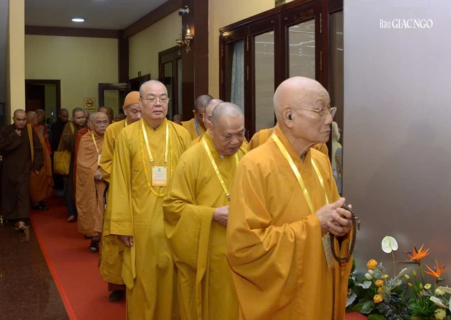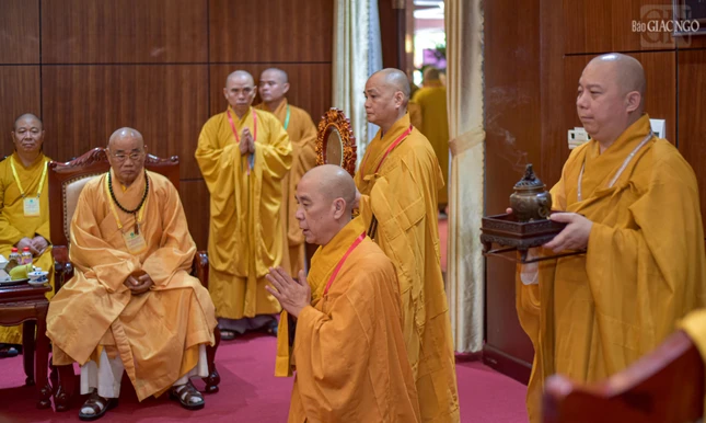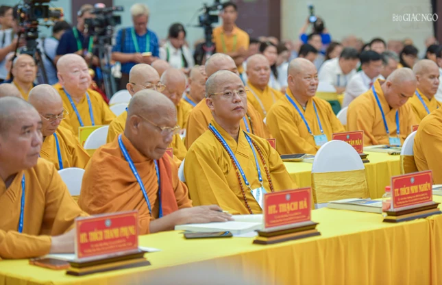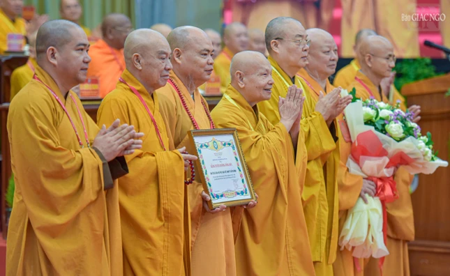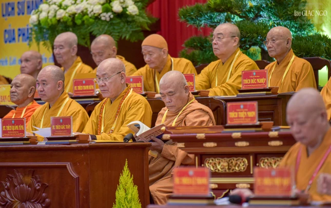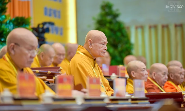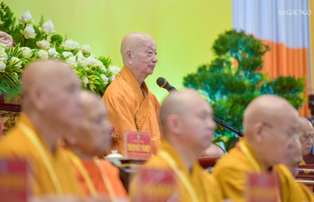 Đại hội với sự chứng minh tối cao của Đức Pháp chủ GHPGVN - Đại lão Hòa thượng Thích Trí Quảng và chư vị giáo phẩm Hội đồng Chứng minh GHPGVN.