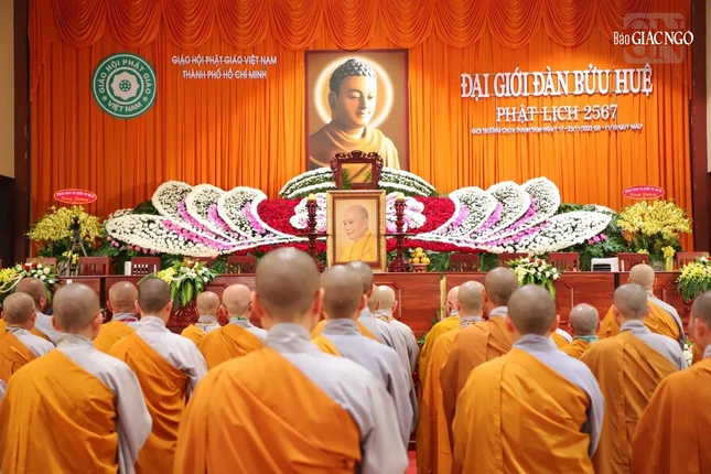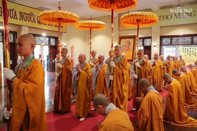 Ban Điều hành giới trường chùa Thanh Tâm cung thỉnh di ảnh an trí tại giảng đường trang nghiêm, thành kính đảnh lễ và niêm hương tưởng niệm, cầu nguyện Đại giới đàn Bửu Huệ - tôn hiệu của ngài diễn ra thành tựu viên mãn.