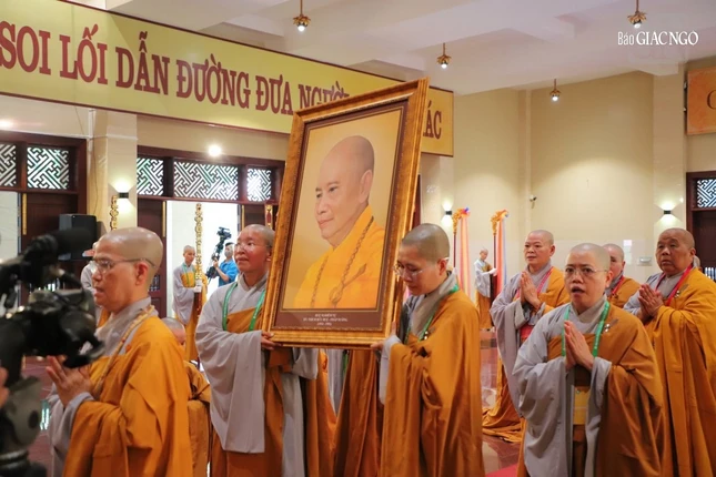GNO - Sáng nay, 21-11, Ban Điều hành giới trường chùa Thanh Tâm cùng chư tôn đức Ni Ban Nghi lễ đã cung rước di ảnh Trưởng lão Hòa thượng Thích Bửu Huệ từ Việt Nam Quốc Tự về chùa Thanh Tâm.