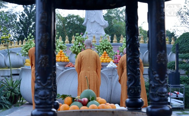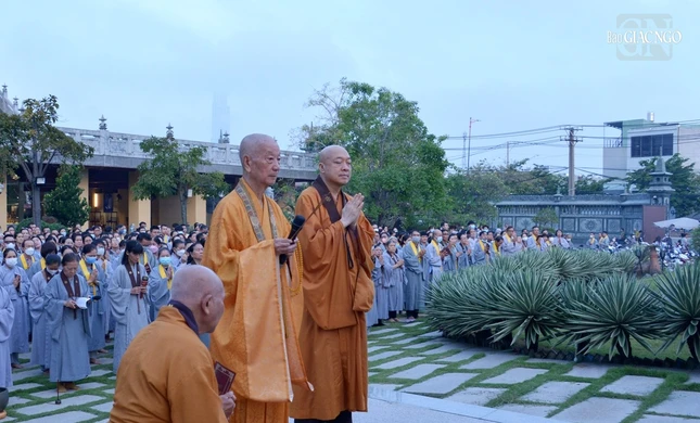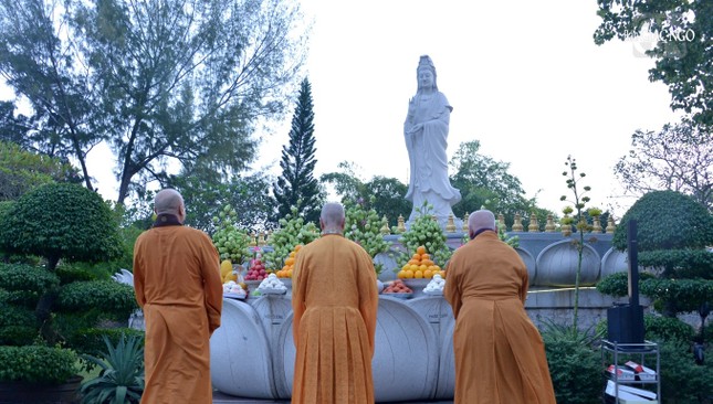 Trưởng lão Hòa thượng Thích Trí Quảng đã thân lâm niêm hương cầu nguyện. Sau đó, chư Tăng hướng dẫn Phật tử xưng tán và đảnh lễ theo 12 lời nguyện của Bồ-tát Quán Thế Âm, cùng trì tụng phẩm Phổ Môn cầu an lành.