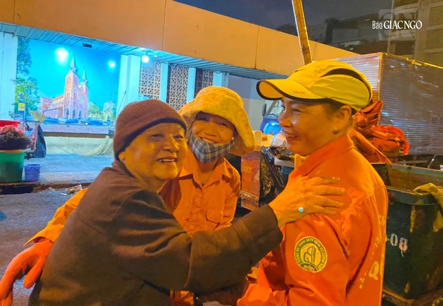 Hình ảnh xúc động với vị "Sư bà" vào rạng sáng cuối năm trở thành kỷ niệm đẹp bao năm qua của anh em công nhân môi trường mỗi dịp cuối năm.