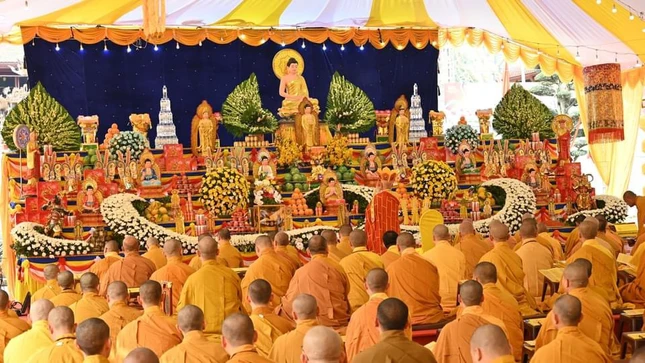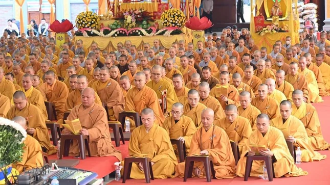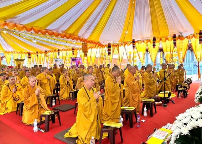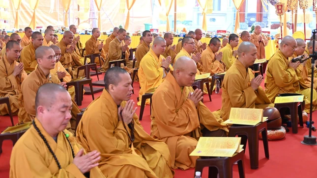 Tại đây, chư vị giáo phẩm đã cử hành nghi lễ tâm linh cầu nguyện, trì tụng kinh văn hồi hướng siêu tiến anh linh liệt sĩ vị quốc vong thân các thời kỳ, vì sự độc lập và thống nhất đất nước.