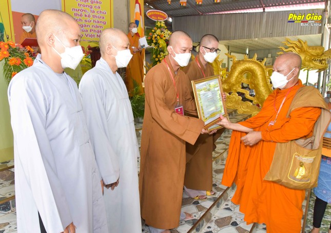 Dịp này, chư tôn đức Ban Trị sự Phật giáo huyện đón nhận Bằng tuyên dương công đức của Ban Trị sự Phật giáo tỉnh và khen thưởng của UBND huyện.