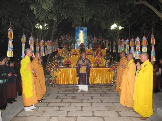 Tham dự buổi lễ có chư tôn đức chùa Phật Tích, chư Tăng Ni trụ trì các chùa trong địa bàn huyện Tiên Du và hơn 600 quý đạo hữu Phật tử.