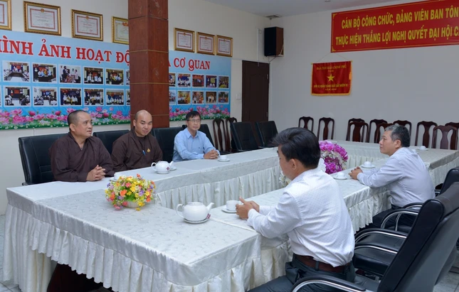 Tại Trụ sở Ban Tôn giáo TP.HCM, ông Nguyễn Văn Lượng, Phó Trưởng ban; cùng ông Vũ Huy Long, Trưởng phòng Nghiệp vụ I thân mật tiếp đoàn. Hai bên đã chia sẻ một số thông tin liên hệ đồng thời có những lời chúc xuân an vui đến lãnh đạo và cán bộ, nhân viên của Ban và Báo.