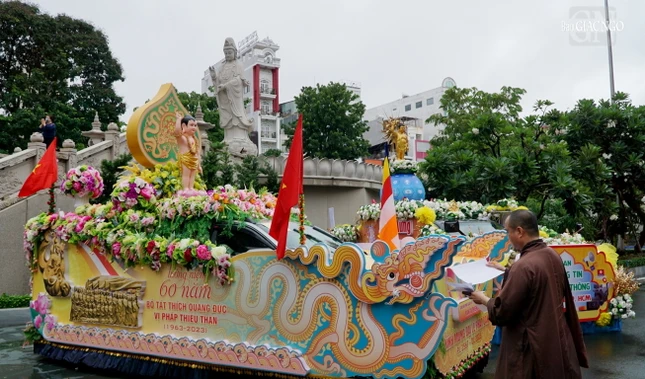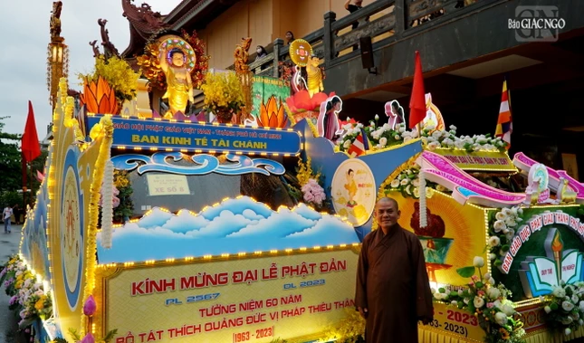 GNO - Chiều nay, 9-4-Quý Mão (27-5-2023), chư tôn đức Ban Giám khảo xe hoa và lễ đài Phật giáo quận huyện, TP.Thủ Đức đã chấm điểm 17 xe hoa diễu hành kính mừng Phật đản, tưởng niệm 60 năm Bồ-tát Thích Quảng Đức vị pháp thiêu thân.