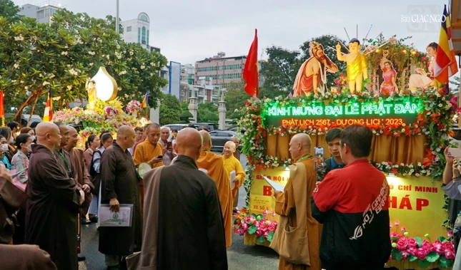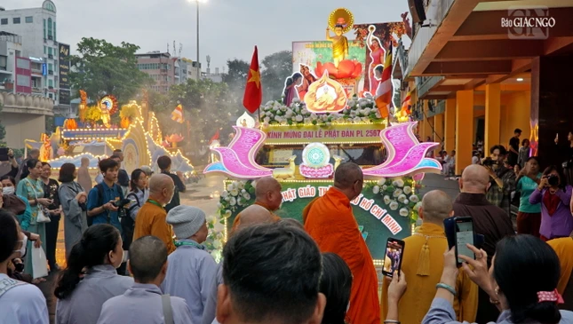 Đoàn xe hoa 17 chiếc gồm: Văn phòng Ban Trị sự TP.HCM, xe hoa các ban: Tăng sự, Giáo dục Phật giáo, Hướng dẫn Phật tử, Hoằng pháp, Nghi lễ, Ban Văn hóa, Kinh tế - Tài chính, Từ thiện xã hội, Phật giáo Quốc tế, Thông tin - Truyền thông, Pháp chế, Kiểm soát, Phân ban Ni giới, Báo Giác Ngộ, Phật giáo Nam tông Khmer, Phật giáo Khất sĩ.