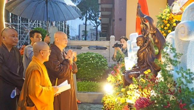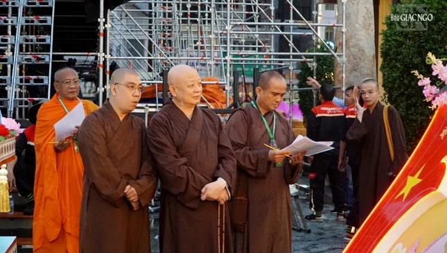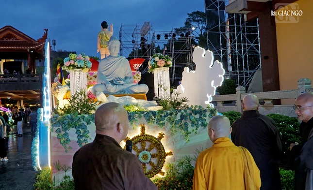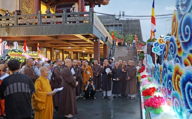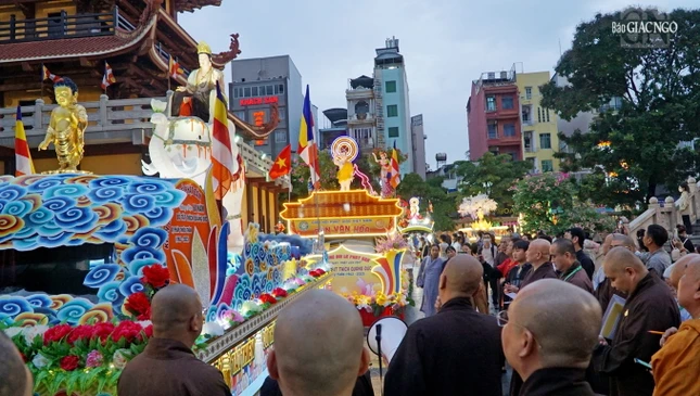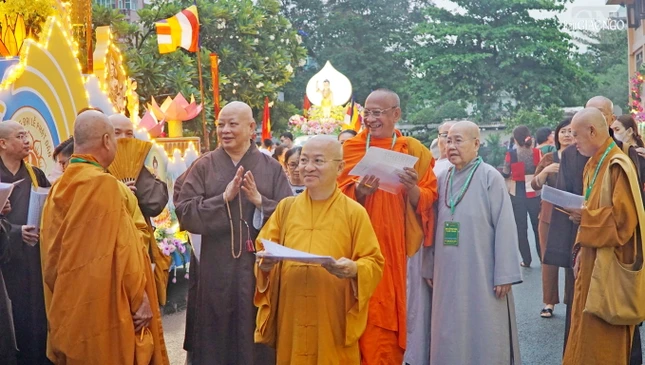 Hình ảnh chư tôn đức chấm điểm xe hoa tại Việt Nam Quốc Tự: