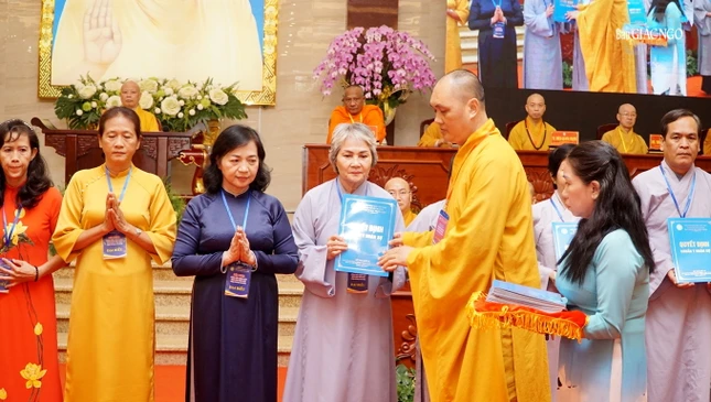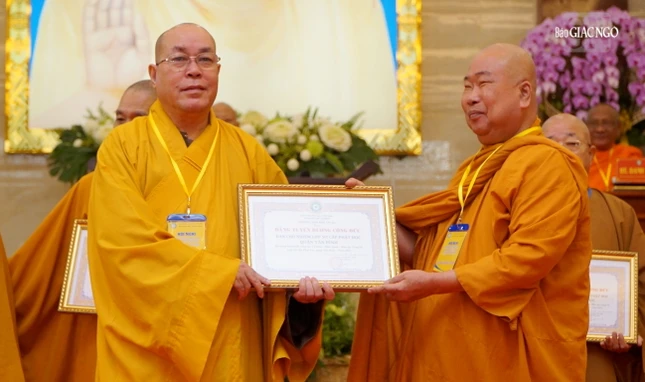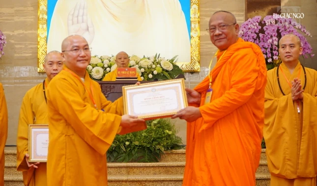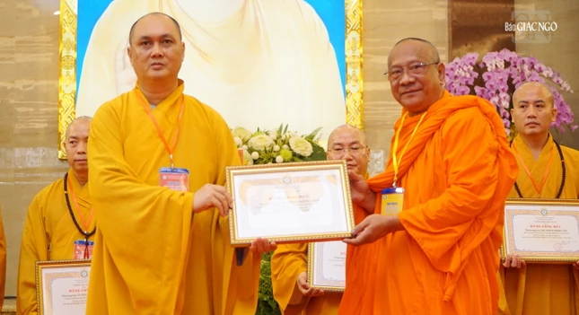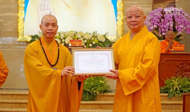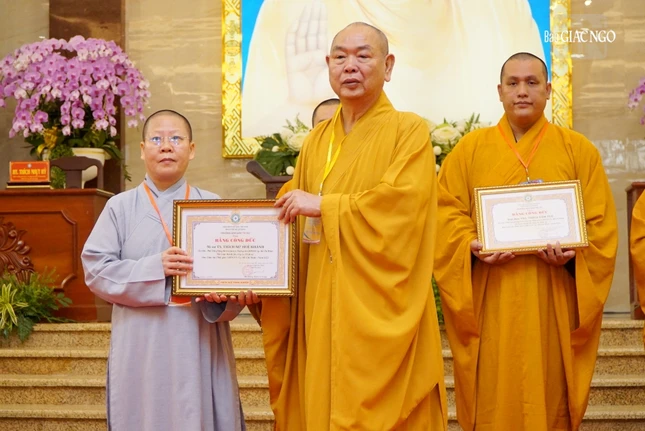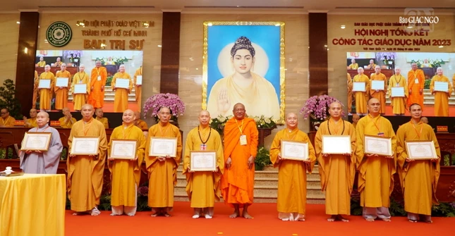 Dịp này, Ban Trị sự GHPGVN TP.HCM có quyết định trao Bằng tuyên dương công đức và Bằng công đức đến 29 tập thể và cá nhân thuộc Ban Giáo dục Phật giáo TP.HCM đã tích cực trong hoạt động Phật sự năm 2023; Ban Giáo dục Phật giáo TP.HCM cũng trao quyết định đến một số thành viên Ban Bảo trợ trực thuộc.
