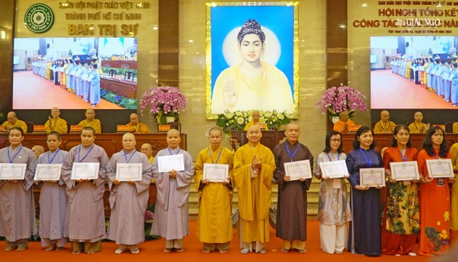 Tại hội nghị, đại biểu cũng lắng nghe chương trình hoạt động Phật sự năm 2024 của Ban Giáo dục Phật giáo TP.HCM gồm 11 hoạt động trọng điểm. Trong đó, Ban dự kiến sẽ lập đề án xin phép mở Trường nội trú Sơ - Trung cấp Phật học TP.HCM (cơ sở 2), tại chùa Phổ Quang (Q.Tân Bình, TP.HCM), trình Ban Thường trực Ban Trị sự GHPGVN TP.HCM xem xét.