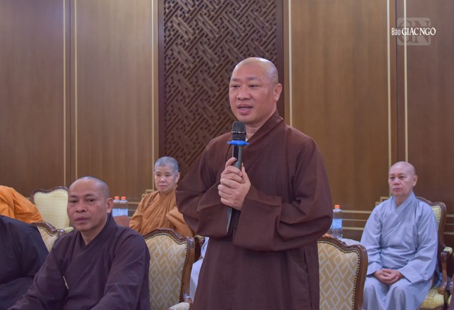 Thượng tọa Thích Trung Sơn, Phó ban Kinh tế - Tài chính T.Ư, Phó ban phụ trách Ẩm thực đại biểu thuộc Ban Hậu cần Đại lễ Vesak Liên Hiệp Quốc 2025 đại diện báo cáo công tác chuẩn bị, kế hoạch phục vụ đại biểu,... đến các thành viên trong ban. Theo đó, trong suốt thời gian diễn ra Đại lễ Vesak Liên Hiệp Quốc 2025 tại TP.HCM, Ban Hậu cần dự kiến sẽ phục vụ cho hơn 10.000 thực khách mỗi ngày, bao gồm các đại biểu tham dự khắp nơi trên thế giới và khách tham quan.