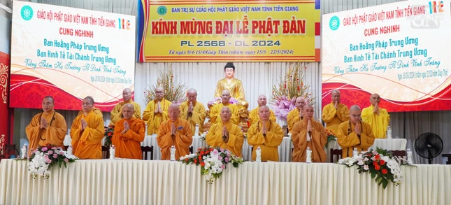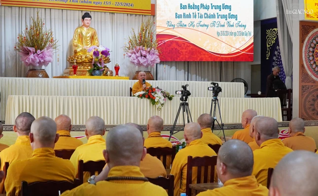 Dịp này, Hòa thượng Phó Trưởng ban Hoằng pháp T.Ư cũng bày tỏ niềm hoan hỷ với các công tác Phật sự của tỉnh Tiền Giang, chương trình tu học an cư dành cho chư Tăng Ni nghiêm mật, chương trình tu học cho Phật tử có nhiều điểm tiêu biểu…