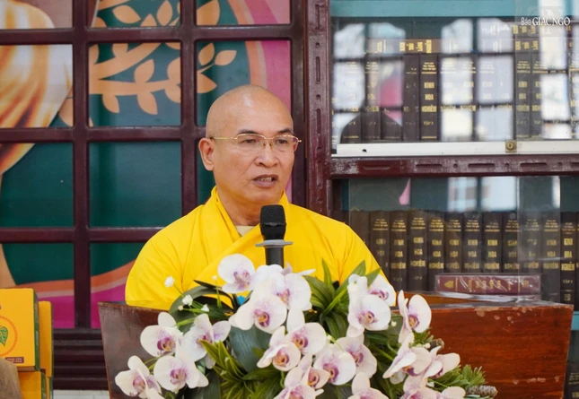 Dịp này, Thượng tọa Thích Chiếu Tuệ đã có bài pháp thoại ngắn chia sẻ đến Tăng Ni an cư tại tỉnh Đồng Tháp.
