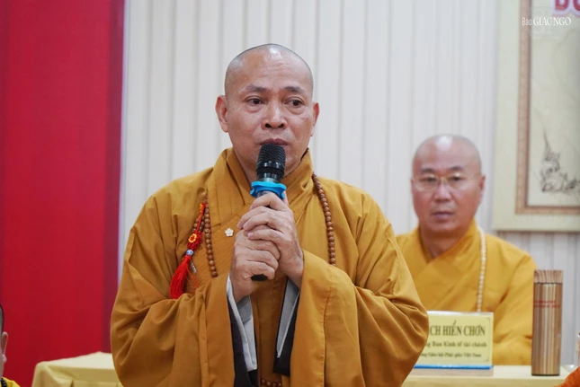 Đại đức Thích Lệ Ngôn, Ủy viên Ban Hoằng pháp T.Ư, Phó ban kiêm Trưởng ban Hoằng pháp tỉnh Long An, Thư ký đoàn cũng đã báo cáo tổng kết chuyến đi của đoàn thăm các tỉnh thành miền Đông, Tây Nam Bộ.