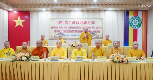 Trong niềm hoan hỷ, vì sự đoàn kết, hòa hợp và với sự tinh tấn trong mùa an cư, Hòa thượng Trưởng ban Trị sự GHPGVN tỉnh Bà Rịa - Vũng Tàu trân trọng chào mừng chư tôn đức đoàn đã vì Phật sự không quản đường xá xa xôi, không nề hà sức khỏe đến thăm, khích lệ, cúng dường tịnh tài, tịnh vật đến hành giả trong tình Linh Sơn pháp lữ.